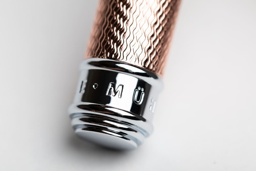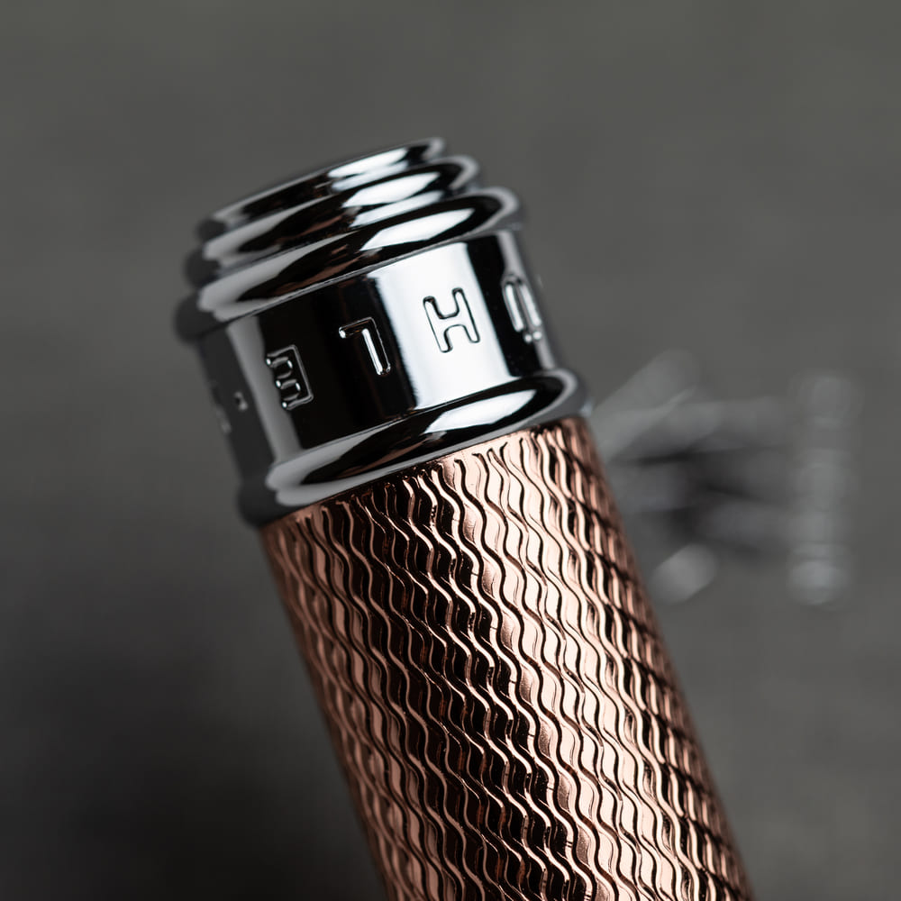 Дополнительное покрытие ручки станка и помазка 12-ти каратным розовым золотом.