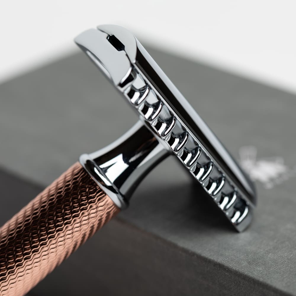 Безопасная бритва с открытым гребнем была разработана для опытных любителей влажного бритья – это самый близкий аналог опасной бритвы. Более агрессивный угол между поверхностью кожи и лезвием делает бритье особенно чистым и эффективным. По сравнению с закрытым гребнем, у бритвы с открытым гребнем лезвие изогнуто под другим углом и более открыто. Так же, открытая гребенка обеспечивает больший промежуток для сбора пены и сбритой щетины во время бритья, и лезвие остается чистым дольше.