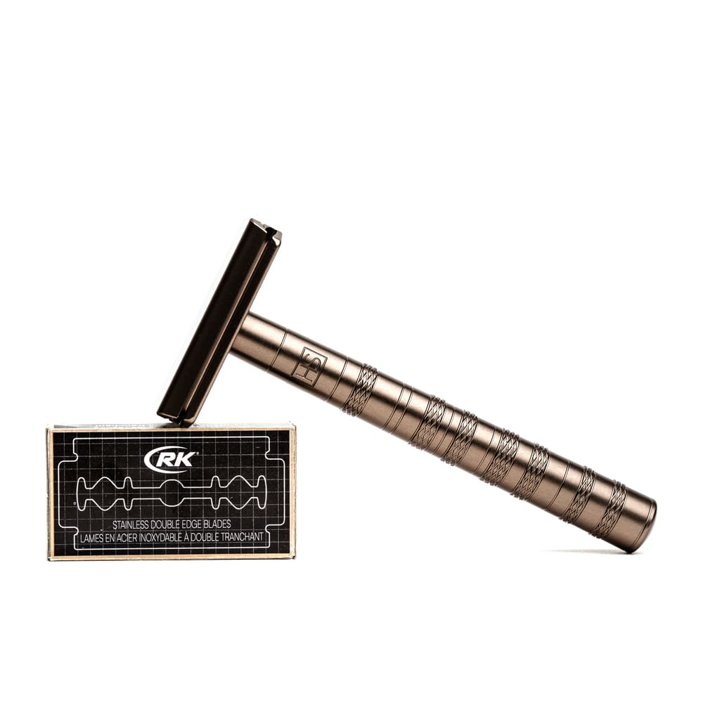 С каждой бритвой в упаковке даются 5 лезвий. Бритва состоит только из металлических деталей, произведена из алюминия, использующегося в аэрокосмической промышленности (и минимального количества вольфрама), и прослужит вам всю жизнь.