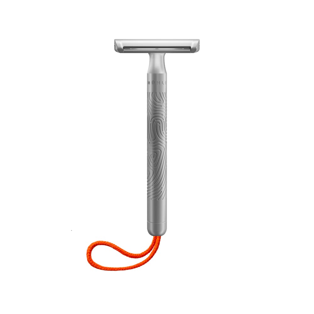 Структура поверхности станка напоминает отпечатки пальцев и обеспечивает надежный хват. Длина ручки чуть больше, чем у других станков MUEHLE, что делает бритье ног и других частей тела комфортным.