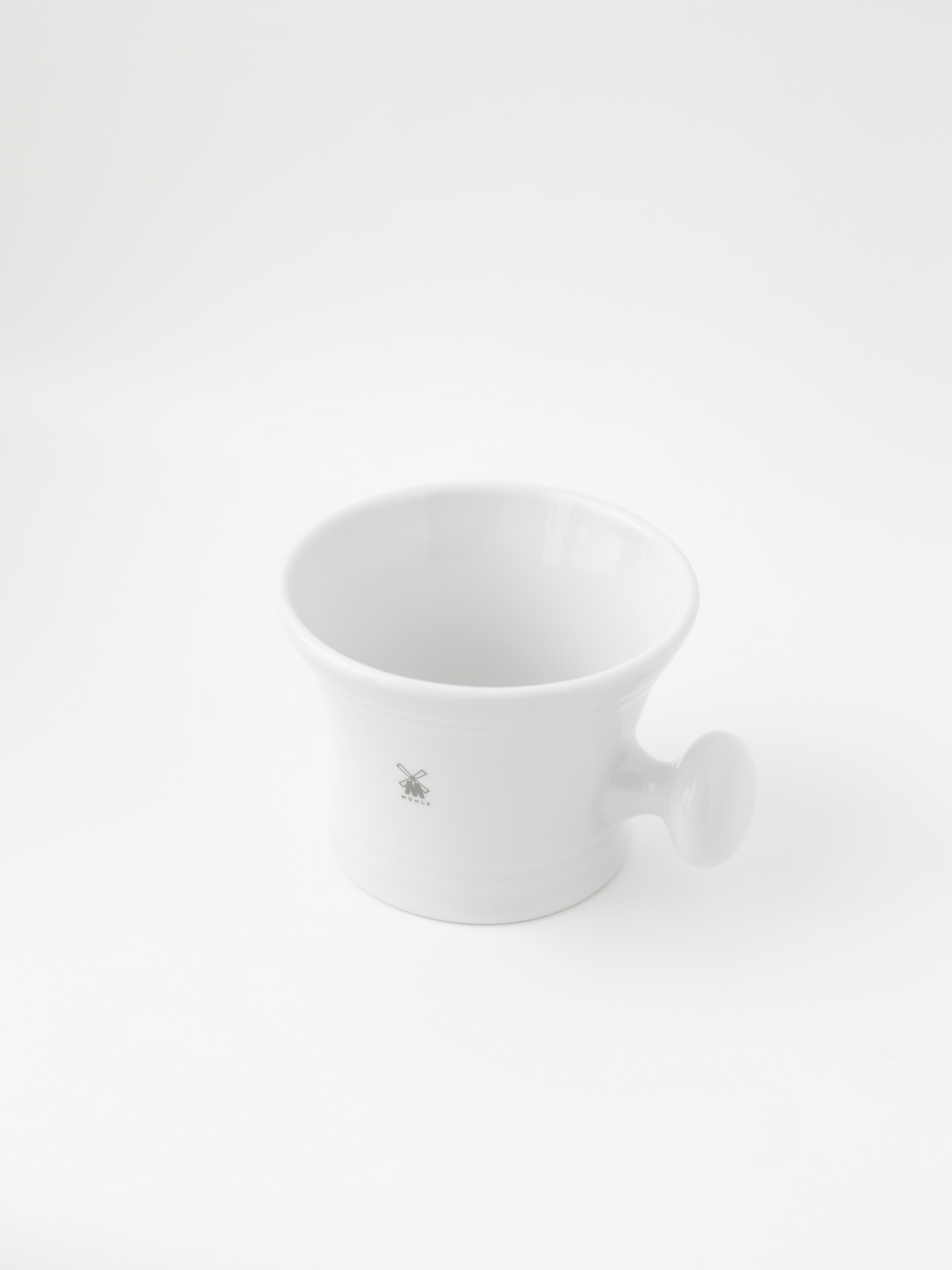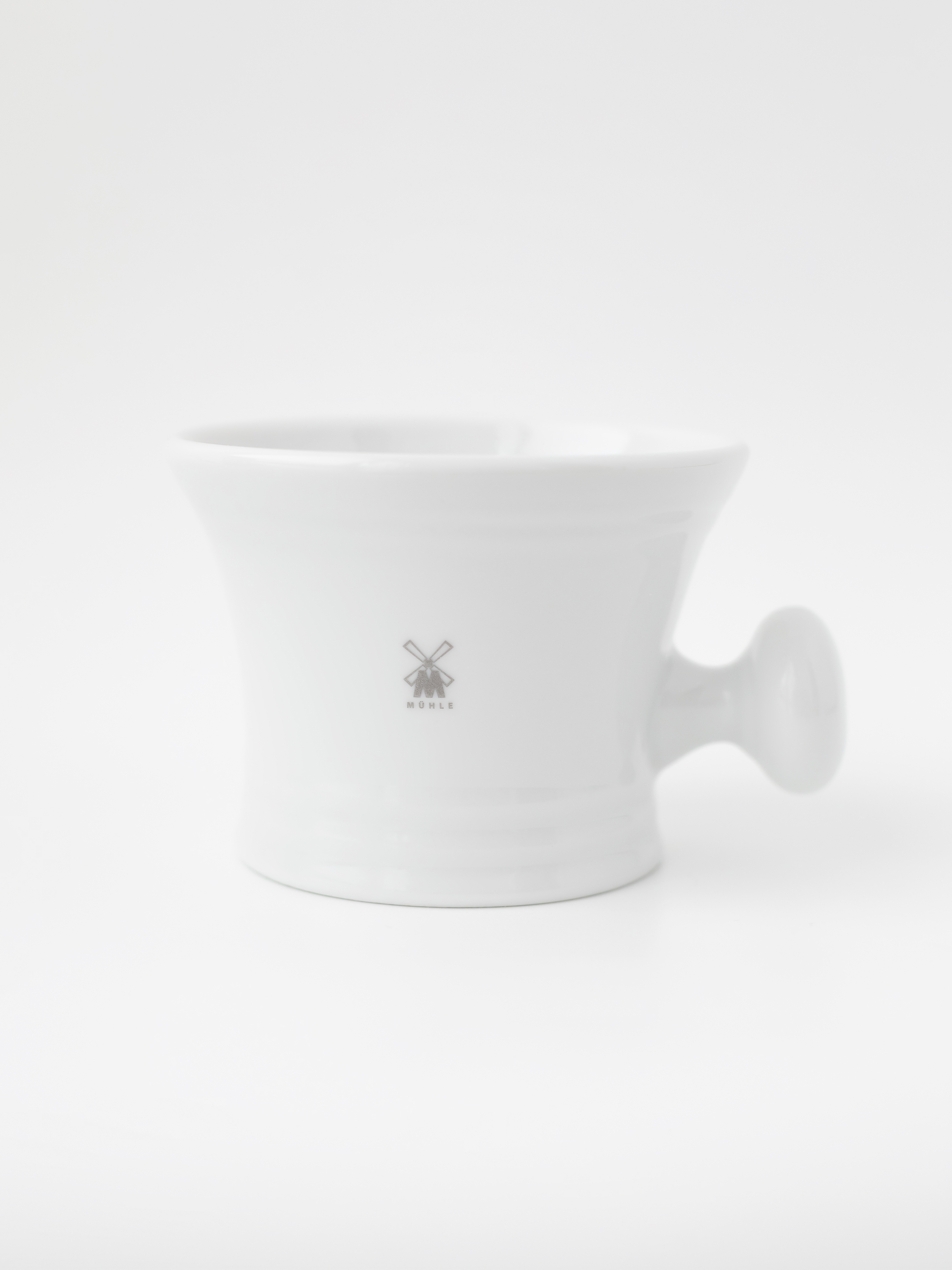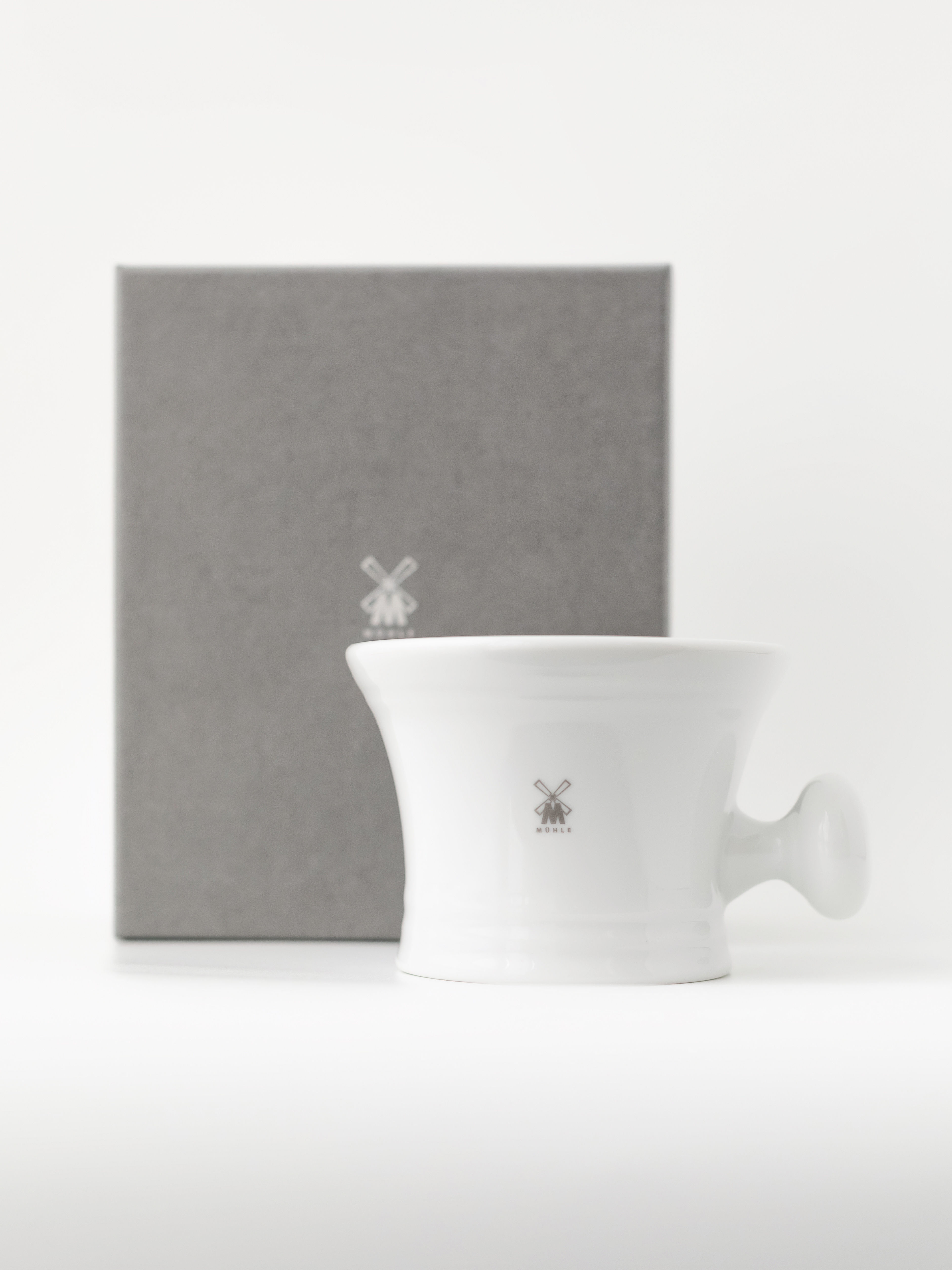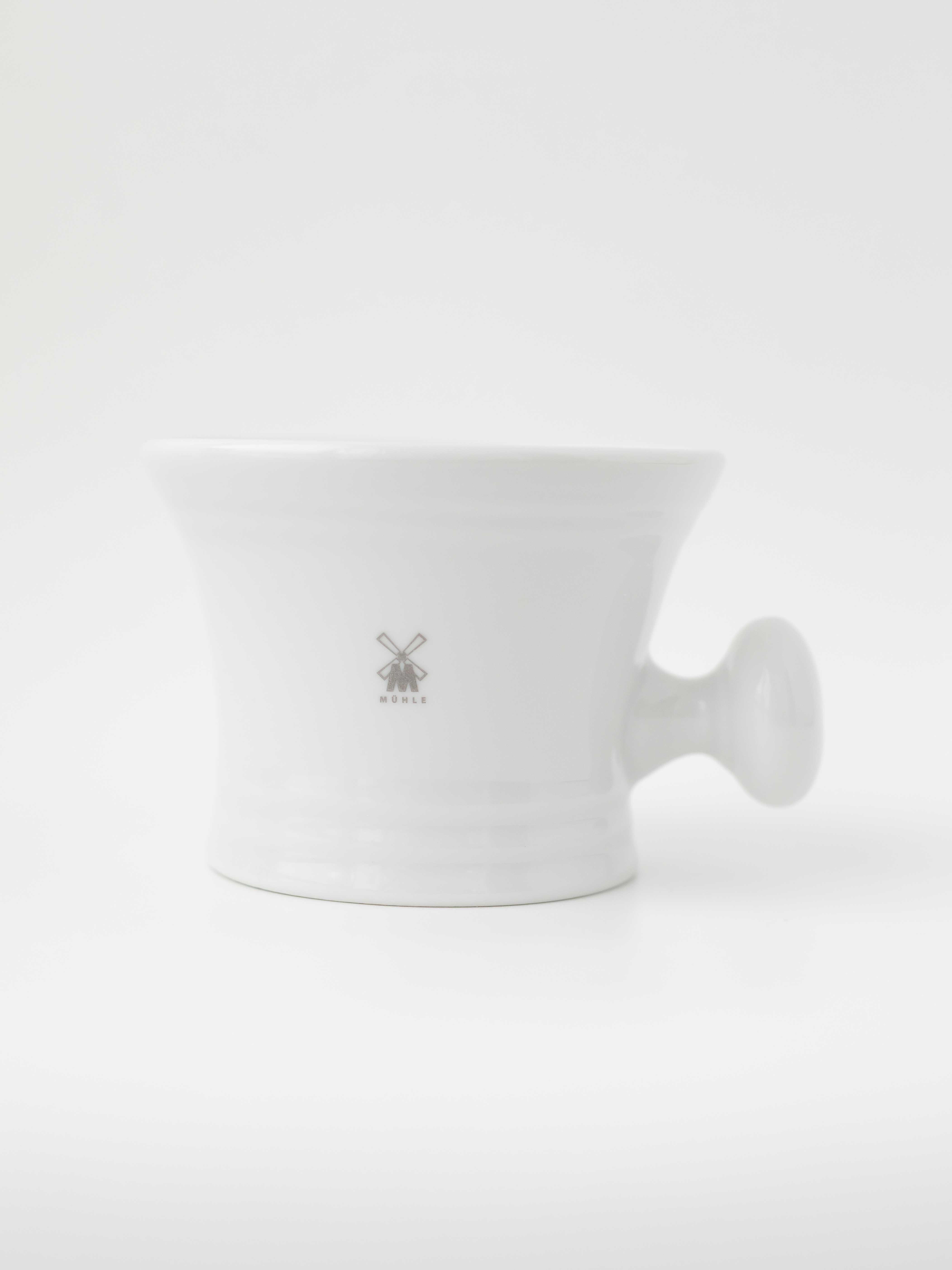 Чаша для бритья MUEHLE, белый фарфор, с ручкой - BRITVOLOGY