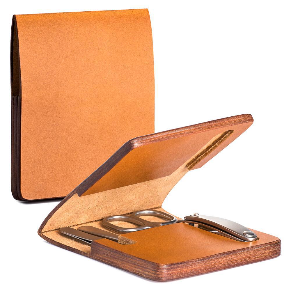Миниатюрный и стильный, этот набор создавался в первую очередь для путешественников. Ведь хочется, чтобы процесс ухода за собой был эстетичным и комфортным даже в дороге. Маникюрный набор от MUEHLE включает клиппер, маникюрные ножницы, пинцет и пилку для ногтей. Все аксессуары уложены в стильный и минималистичный кожаный кейс.