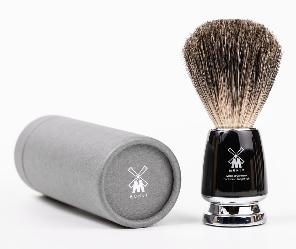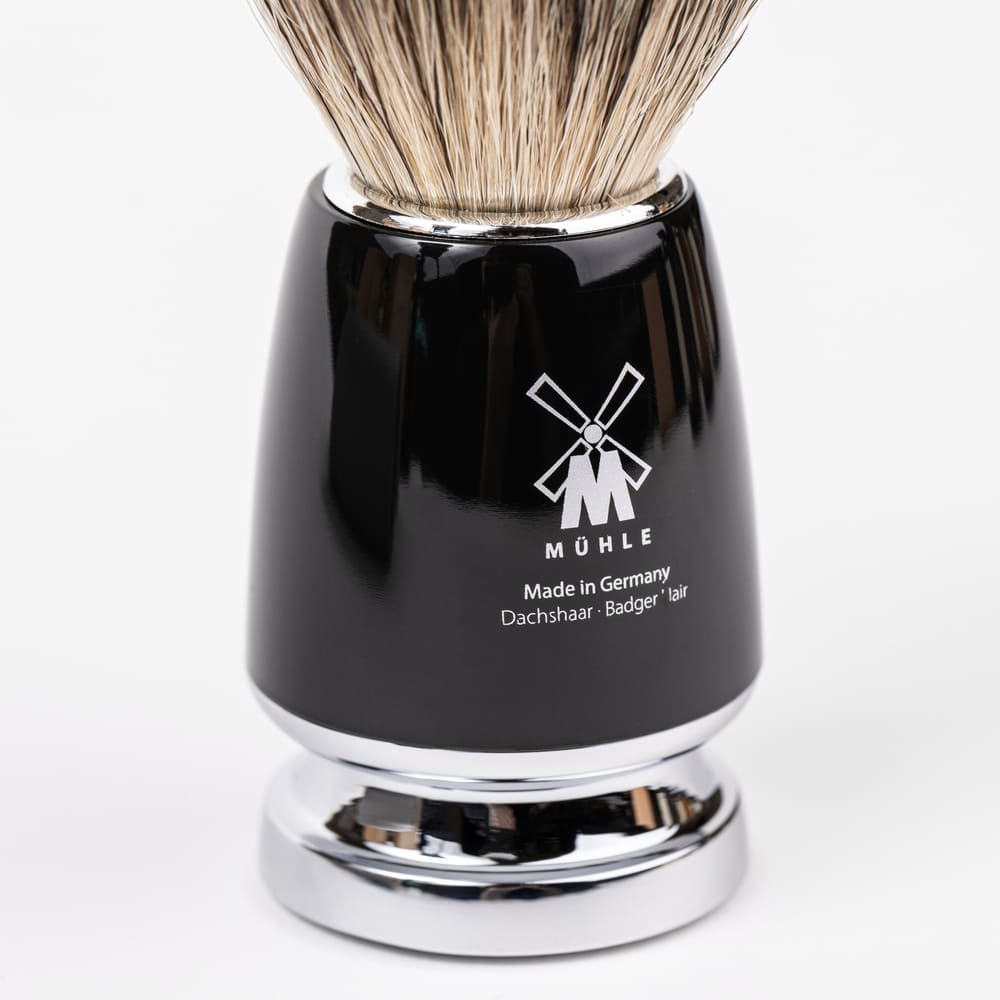 Помазок MUEHLE RYTMO, натуральный барсучий ворс, черная смола - BRITVOLOGY