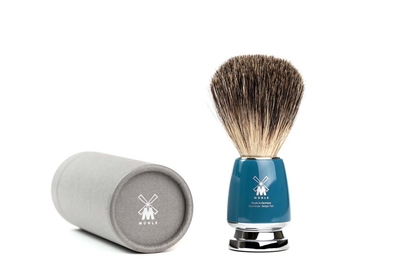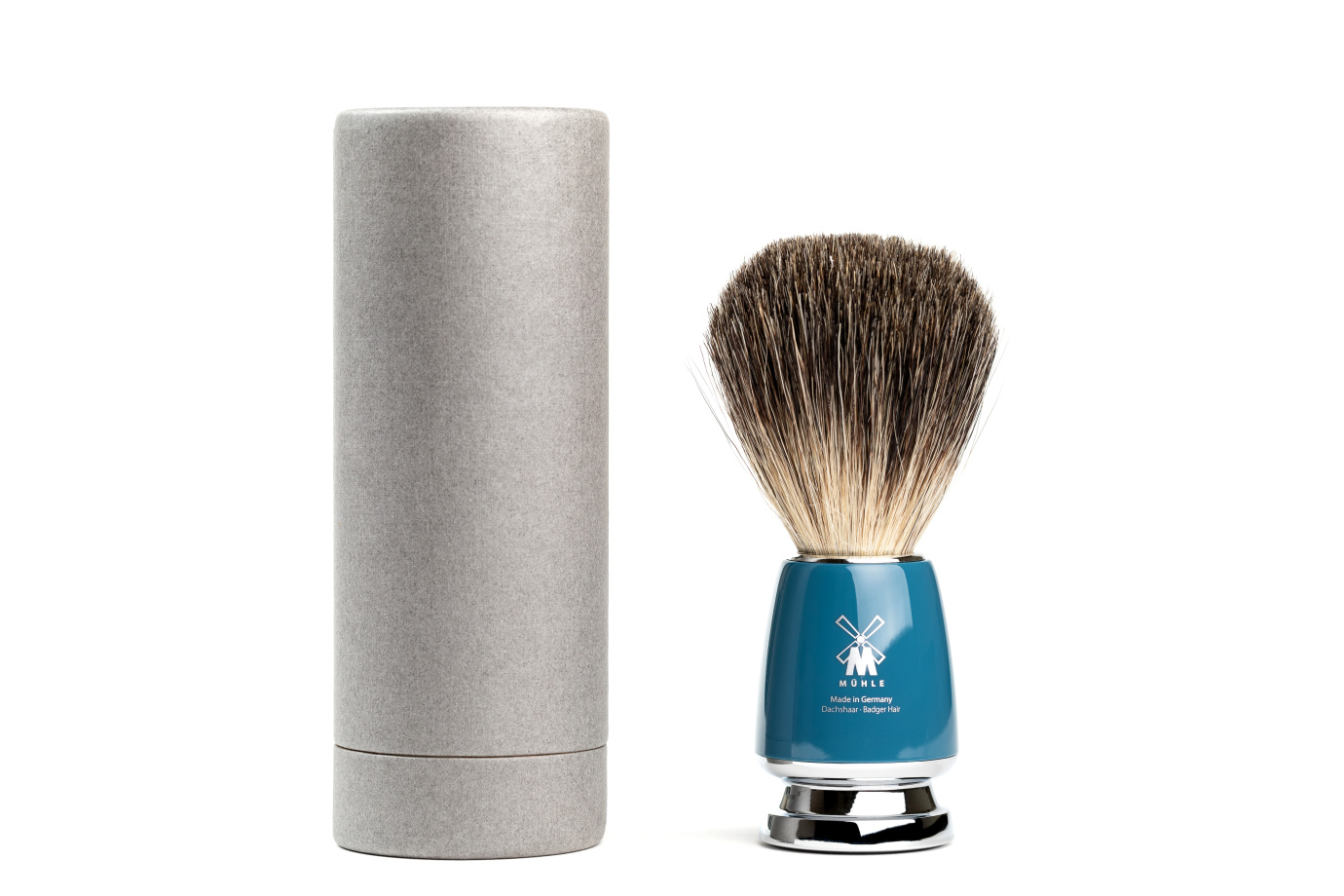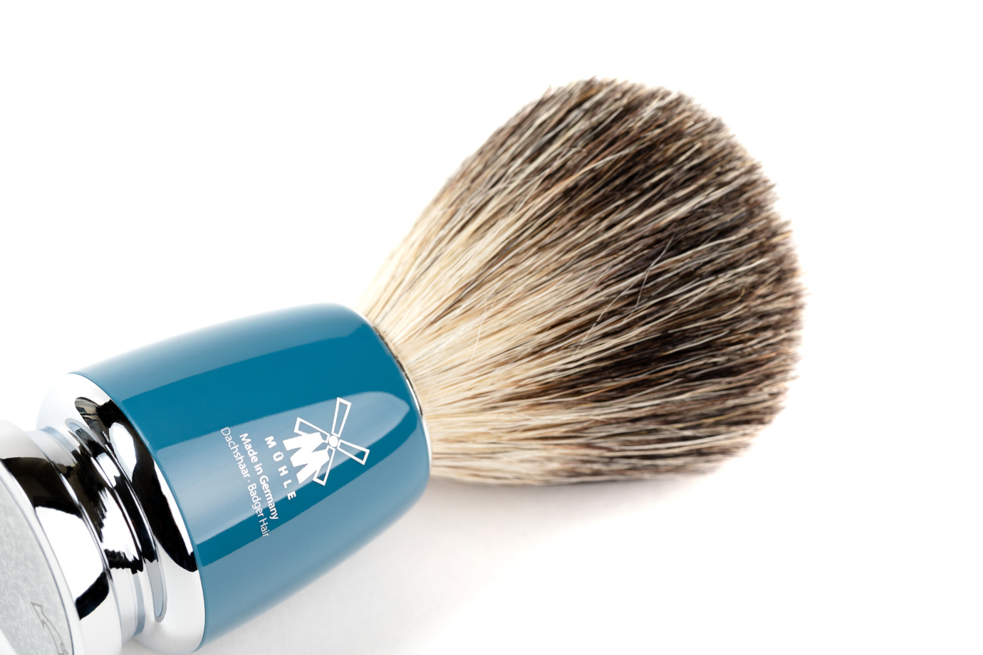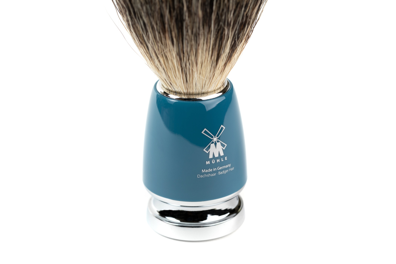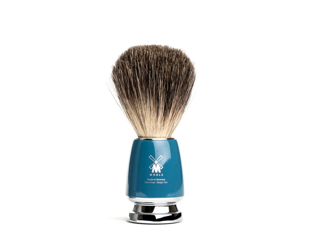 Помазок MUEHLE RYTMO, натуральный барсучий ворс, темно-бирюзовая смола - BRITVOLOGY