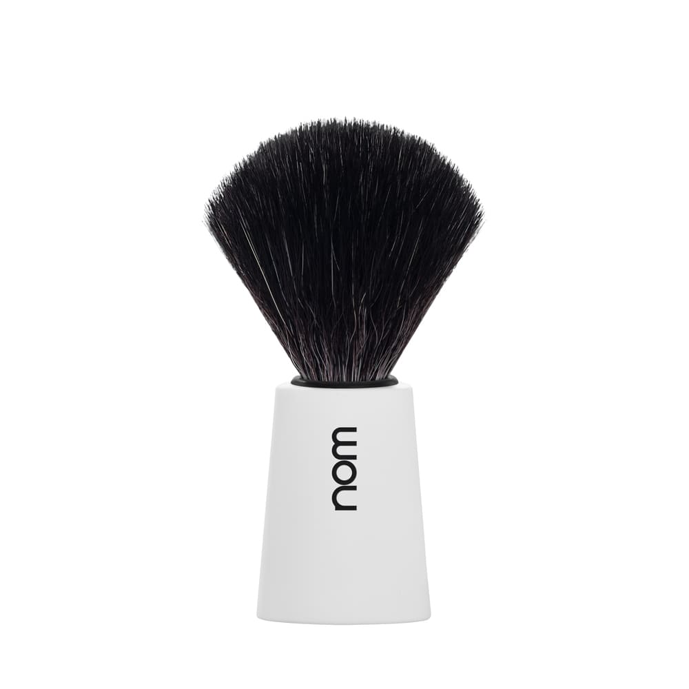 Черная фибра - абсолютно веганское волокно, разработанное специально для влажного бритья. Своим темным цветом и мягкостью синтетические волокна напоминают натуральный ворс и обладают такими же отличными характеристиками. Вместе с тем синтетические волокна более прочны, невероятно долговечные и износостойкие. При ежедневном использовании волокна, обработанные вручную, менее чувствительны, чем натуральный ворс, так как они быстрее высыхают и устойчивы к воздействию мыла и кремов для бритья. Многие предпочитают этот материал не только потому, что он веганский, но и потому что он образует особенно кремовую и пышную пену из небольшого количества мыла или крема для бритья, и поэтому его использование очень экономично.