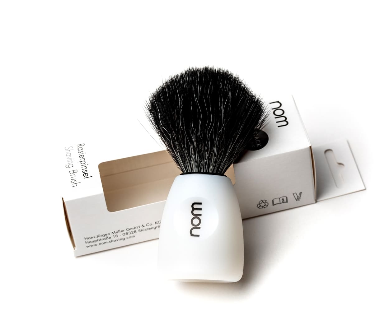 Помазок NOM LASSE, черная фибра, белый пластик - BRITVOLOGY