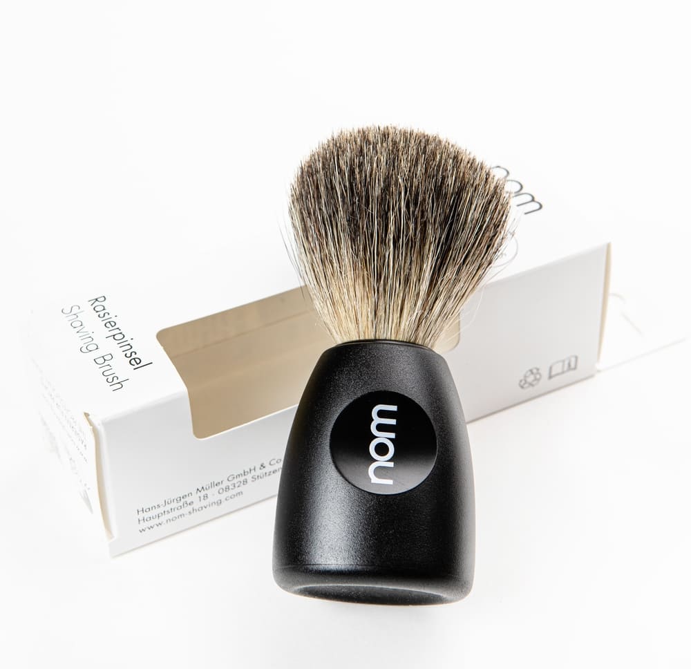 Помазок NOM LASSE, натуральный барсучий ворс, черный пластик - BRITVOLOGY