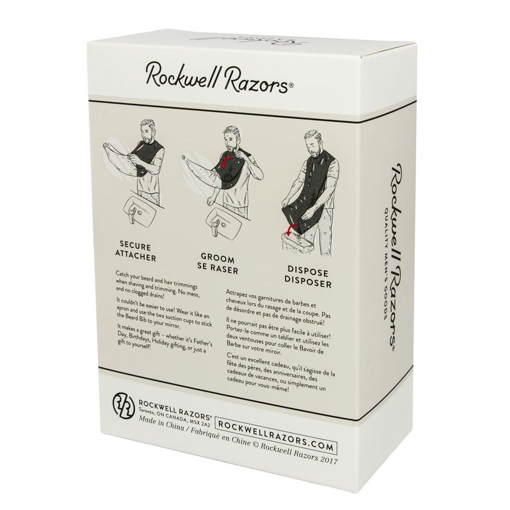 Фартук Rockwell Razors Beard Bib с присосками крепится к зеркалу во время стрижки бороды. Это сохраняет чистоту в ванной комнате и защищает от засорившегося слива раковины.